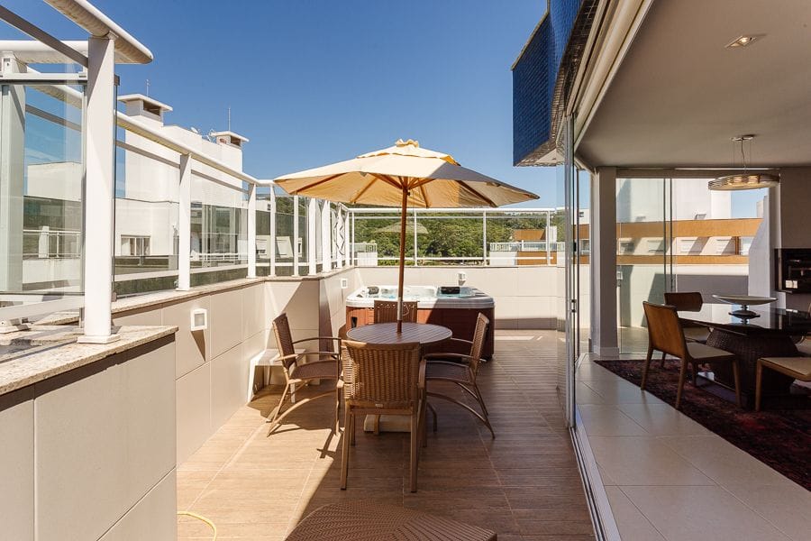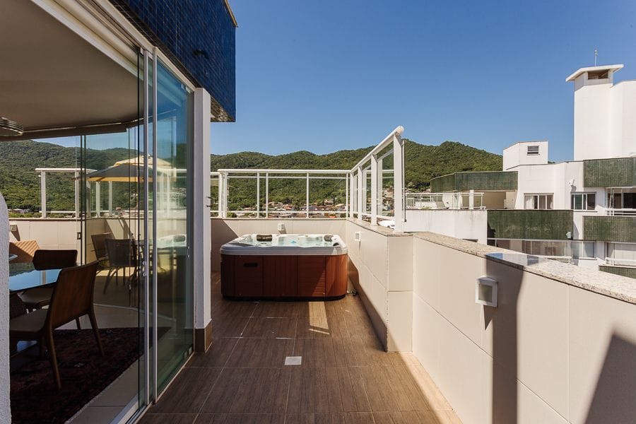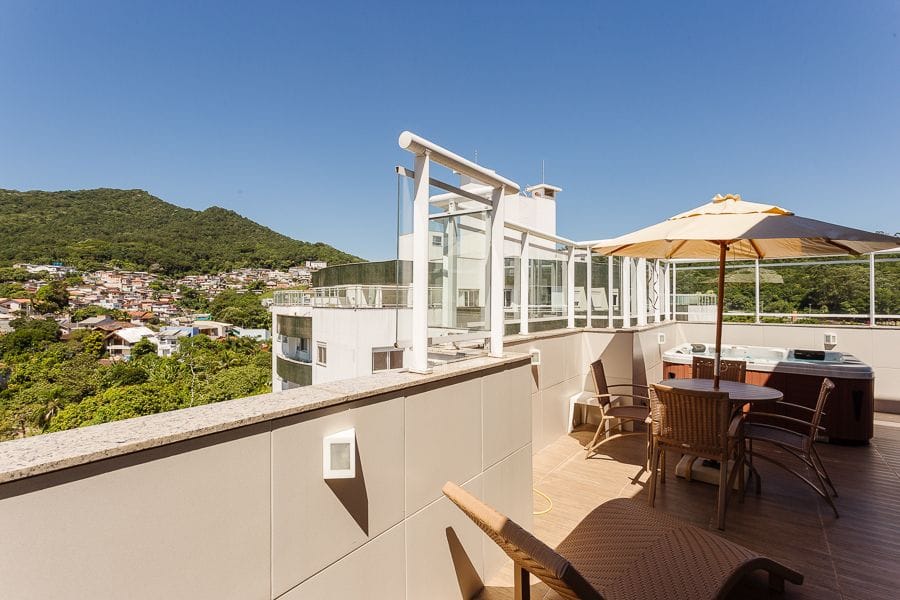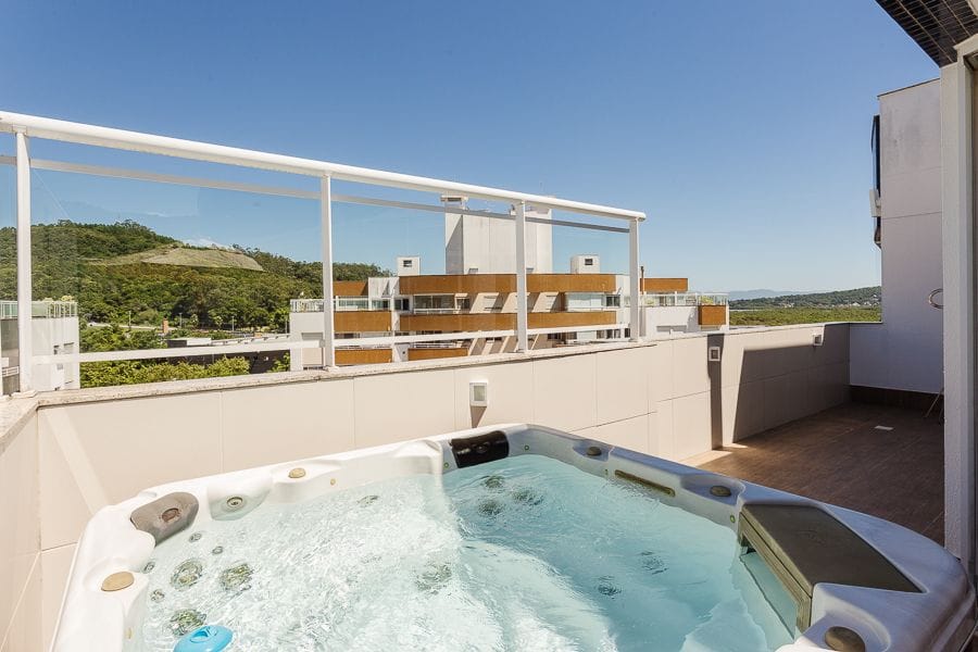 Cobertura com 2 dormitórios à venda, no bairro Saco Grande em Florianópolis. Cobertura plana, com duas amplas suítes, lavabo, foi reformada e hoje conta com a área social ampliada e integrada ao terraço que contempla jacuzzi. A suíte principal tem área de escritório, closet e vista mar. Duas vagas de garagem.Condomínio Clube completo com piscina adulto e infantil, salão de festas, espaço gourmet, brinquedoteca, playground, horta, academia, churrasqueiras, quadra poliesportiva, muitas vagas de visitantes, além de um lindo bosque e portaria 24h.