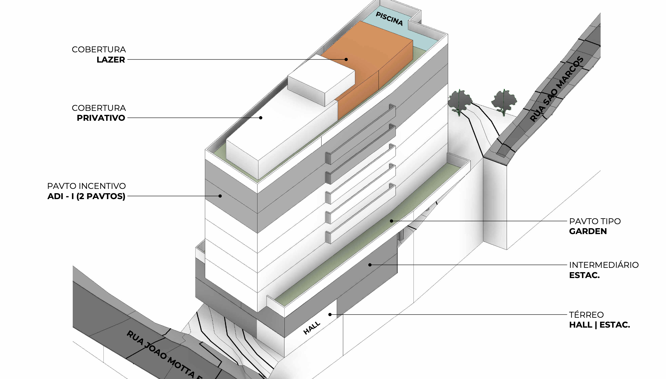 Estudo de potencial construtivo desenvolvido pelo escritório AF, Arquitetura por André Fornari.